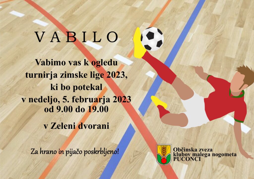 V A B I L O Vabimo vas k ogledu turnirja zimske lige 2023, ki bo potekal v nedeljo, 5. februarja 2023 od 9.00 do 19.00 Za hrano in pijačo poskrbljeno! v Zeleni dvorani OŠ Puconci. Predsednik UO OZ KMN Puconci: Andrej Bedek Andrej Bedek l.r.